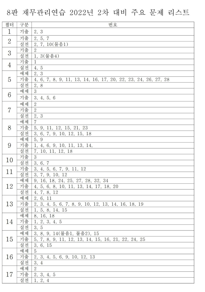 재경관리사 5개년도 연습문제 무료 다운로드 (0) | 2022.07.11 |